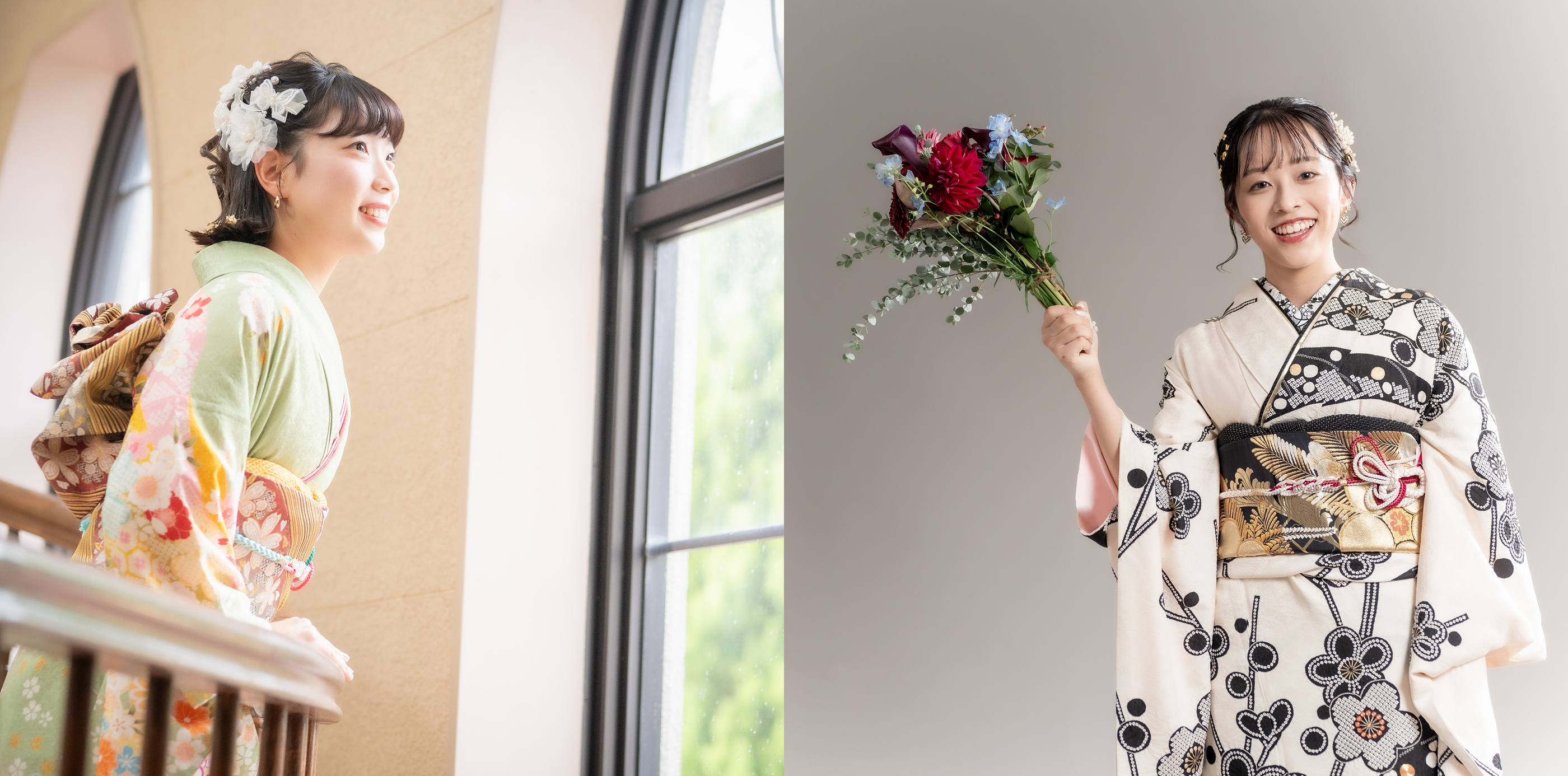 着付けメイキャップ、写真撮影、フラワーコーディネイト、